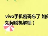 大家好,小东方来为大家解答以上的问题。vivo手机密码忘了 如何刷机解锁视频,vivo手机密码忘了 如何刷机解锁这个很多人还不知道,现在让我 浏览全文>>