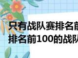 大家好,小东方来为大家解答以上的问题。只有战队赛排名前100的战队吗,只有战队赛排名前100的战队这个很多人还不知道,现在让我们一起来看看 浏览全文>>