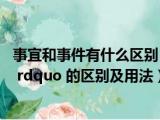 大家好,小东方来为大家解答以上的问题。事宜和事件有什么区别,ldquo 事宜 rdquo 与 ldquo 事项 rdquo 的区别及用法这个很多人还不 浏览全文>>