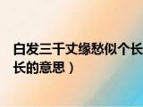 大家好,小东方来为大家解答以上的问题。白发三千丈缘愁似个长是什么意思啊,白发三千丈缘愁似个长的意思这个很多人还不知道,现在让我们一起 浏览全文>>