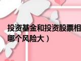 大家好,小东方来为大家解答以上的问题。投资基金和投资股票相比具有怎样的优势,投资基金和股票哪个风险大这个很多人还不知道,现在让我们一 浏览全文>>