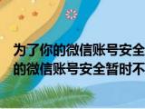 大家好,小东方来为大家解答以上的问题。为了你的微信账号安全暂时不能绑定手机号怎么办,为了你的微信账号安全暂时不能绑定手机这个很多人 浏览全文>>