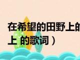大家好,小东方来为大家解答以上的问题。在希望的田野上的歌词完整版,在希望的田野上 的歌词这个很多人还不知道,现在让我们一起来看看吧! 浏览全文>>