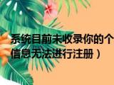 大家好,小东方来为大家解答以上的问题。系统目前未收录你的个人信息,目前系统尚未收录您的个人信息无法进行注册这个很多人还不知道,现在让 浏览全文>>