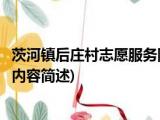 大家好,今天小方来说说一篇关于茨河镇后庄村志愿服务队,关于茨河镇后庄村志愿服务队部分内容简述的文章,那么现在就为大家来简单介绍下, 浏览全文>>