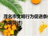 大家好,今天小方来说说一篇关于茂名市文明行为促进条例,关于茂名市文明行为促进条例部分内容简述的文章,那么现在就为大家来简单介绍下, 浏览全文>>