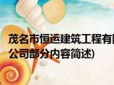 大家好,今天小方来说说一篇关于茂名市恒运建筑工程有限公司,关于茂名市恒运建筑工程有限公司部分内容简述的文章,那么现在就为大家来简单 浏览全文>>