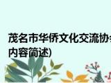大家好,今天小方来说说一篇关于茂名市华侨文化交流协会,关于茂名市华侨文化交流协会部分内容简述的文章,那么现在就为大家来简单介绍下, 浏览全文>>