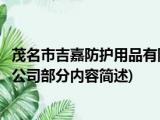 大家好,今天小方来说说一篇关于茂名市吉嘉防护用品有限公司,关于茂名市吉嘉防护用品有限公司部分内容简述的文章,那么现在就为大家来简单 浏览全文>>