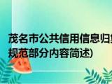 大家好,今天小方来说说一篇关于茂名市公共信用信息归集规范,关于茂名市公共信用信息归集规范部分内容简述的文章,那么现在就为大家来简单 浏览全文>>