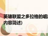 大家好,今天小方来说说一篇关于英雄联盟之多拉格的崛起,关于英雄联盟之多拉格的崛起部分内容简述的文章,那么现在就为大家来简单介绍下, 浏览全文>>