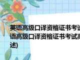 大家好,今天小方来说说一篇关于英语高级口译岗位资格证书考试练习-口语与口译300题,关于英语高级口译岗位资格证书考试练习-口语与口译300 浏览全文>>