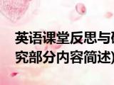 大家好,今天小方来说说一篇关于英语课堂反思与研究,关于英语课堂反思与研究部分内容简述的文章,那么现在就为大家来简单介绍下,希望对各 浏览全文>>