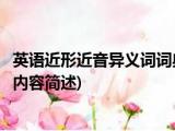 大家好,今天小方来说说一篇关于英语近形近音异义词词典,关于英语近形近音异义词词典部分内容简述的文章,那么现在就为大家来简单介绍下, 浏览全文>>