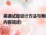 大家好,今天小方来说说一篇关于英语试题设计方法与策略,关于英语试题设计方法与策略部分内容简述的文章,那么现在就为大家来简单介绍下, 浏览全文>>