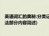 大家好,今天小方来说说一篇关于英语词汇的奥秘:分类记忆法,关于英语词汇的奥秘:分类记忆法部分内容简述的文章,那么现在就为大家来简单介 浏览全文>>