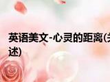 大家好,今天小方来说说一篇关于英语美文-心灵的距离,关于英语美文-心灵的距离部分内容简述的文章,那么现在就为大家来简单介绍下,希望对 浏览全文>>