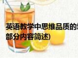 大家好,今天小方来说说一篇关于英语教学中思维品质的培养,关于英语教学中思维品质的培养部分内容简述的文章,那么现在就为大家来简单介绍 浏览全文>>