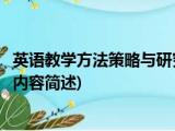 大家好,今天小方来说说一篇关于英语教学方法策略与研究,关于英语教学方法策略与研究部分内容简述的文章,那么现在就为大家来简单介绍下, 浏览全文>>