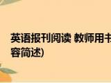 大家好,今天小方来说说一篇关于英语报刊阅读 教师用书,关于英语报刊阅读 教师用书部分内容简述的文章,那么现在就为大家来简单介绍下, 浏览全文>>