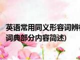 大家好,今天小方来说说一篇关于英语常用同义形容词辨析词典,关于英语常用同义形容词辨析词典部分内容简述的文章,那么现在就为大家来简单 浏览全文>>