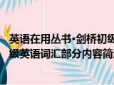 大家好,今天小方来说说一篇关于英语在用丛书·剑桥初级英语词汇,关于英语在用丛书·剑桥初级英语词汇部分内容简述的文章,那么现在就为大 浏览全文>>