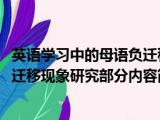 大家好,今天小方来说说一篇关于英语学习中的母语负迁移现象研究,关于英语学习中的母语负迁移现象研究部分内容简述的文章,那么现在就为大 浏览全文>>