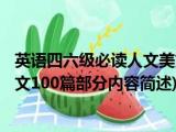 大家好,今天小方来说说一篇关于英语四六级必读人文美文100篇,关于英语四六级必读人文美文100篇部分内容简述的文章,那么现在就为大家来简 浏览全文>>