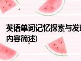 大家好,今天小方来说说一篇关于英语单词记忆探索与发现,关于英语单词记忆探索与发现部分内容简述的文章,那么现在就为大家来简单介绍下, 浏览全文>>