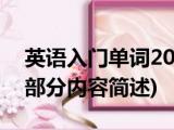 大家好,今天小方来说说一篇关于英语入门单词2000,关于英语入门单词2000部分内容简述的文章,那么现在就为大家来简单介绍下,希望对各位小 浏览全文>>