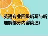 大家好,今天小方来说说一篇关于英语专业四级听写与听力理解,关于英语专业四级听写与听力理解部分内容简述的文章,那么现在就为大家来简单 浏览全文>>