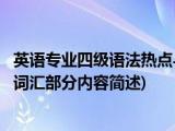 大家好,今天小方来说说一篇关于英语专业四级语法热点与词汇,关于英语专业四级语法热点与词汇部分内容简述的文章,那么现在就为大家来简单 浏览全文>>