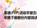 大家好,今天小方来说说一篇关于英语,PEP活动手册五年级下册,关于英语,PEP活动手册五年级下册部分内容简述的文章,那么现在就为大家来简 浏览全文>>