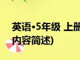 大家好,今天小方来说说一篇关于英语·5年级 上册,关于英语·5年级 上册部分内容简述的文章,那么现在就为大家来简单介绍下,希望对各位 浏览全文>>