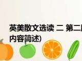 大家好,今天小方来说说一篇关于英美散文选读 二 第二版,关于英美散文选读 二 第二版部分内容简述的文章,那么现在就为大家来简单介绍 浏览全文>>