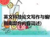大家好,今天小方来说说一篇关于英文科技论文写作与编辑指南,关于英文科技论文写作与编辑指南部分内容简述的文章,那么现在就为大家来简单 浏览全文>>