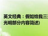 大家好,今天小方来说说一篇关于英文经典:假如给我三天光明,关于英文经典:假如给我三天光明部分内容简述的文章,那么现在就为大家来简单 浏览全文>>