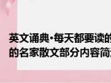 大家好,今天小方来说说一篇关于英文诵典·每天都要读的名家散文,关于英文诵典·每天都要读的名家散文部分内容简述的文章,那么现在就为大 浏览全文>>