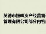 大家好,今天小方来说说一篇关于英德市恒辉资产经营管理有限公司,关于英德市恒辉资产经营管理有限公司部分内容简述的文章,那么现在就为大 浏览全文>>