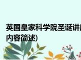 大家好,今天小方来说说一篇关于英国皇家科学院圣诞讲座,关于英国皇家科学院圣诞讲座部分内容简述的文章,那么现在就为大家来简单介绍下, 浏览全文>>