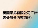 大家好,今天小方来说说一篇关于英国攀龙有限公司广州代表处,关于英国攀龙有限公司广州代表处部分内容简述的文章,那么现在就为大家来简单 浏览全文>>