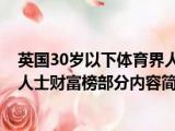 大家好,今天小方来说说一篇关于英国30岁以下体育界人士财富榜,关于英国30岁以下体育界人士财富榜部分内容简述的文章,那么现在就为大家来 浏览全文>>