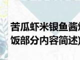 大家好,今天小方来说说一篇关于苦瓜虾米银鱼酱炒饭,关于苦瓜虾米银鱼酱炒饭部分内容简述的文章,那么现在就为大家来简单介绍下,希望对各 浏览全文>>