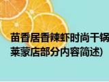 大家好,今天小方来说说一篇关于苗香居香辣虾时尚干锅 莱蒙店,关于苗香居香辣虾时尚干锅 莱蒙店部分内容简述的文章,那么现在就为大家来 浏览全文>>