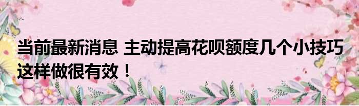 当前最新消息 主动提高花呗额度几个小技巧 这样做很有效!