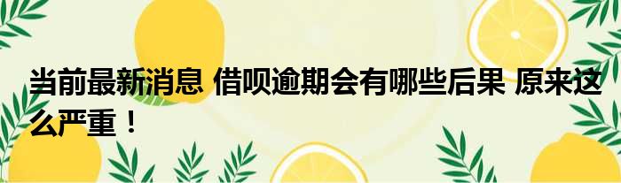 当前最新消息 借呗逾期会有哪些后果 原来这么严重!