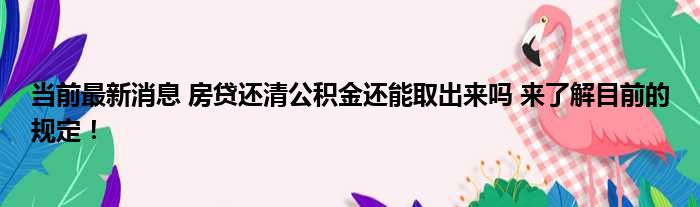 当前最新消息 房贷还清公积金还能取出来吗 来了解目前的规定!