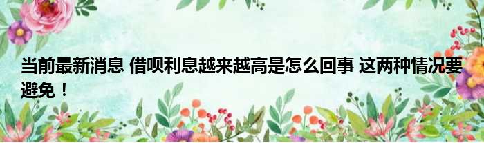 当前最新消息 借呗利息越来越高是怎么回事 这两种情况要避免!
