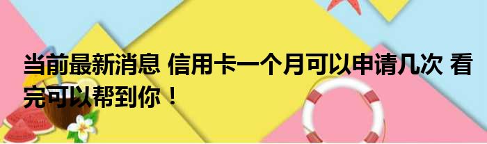 当前最新消息 信用卡一个月可以申请几次 看完可以帮到你!