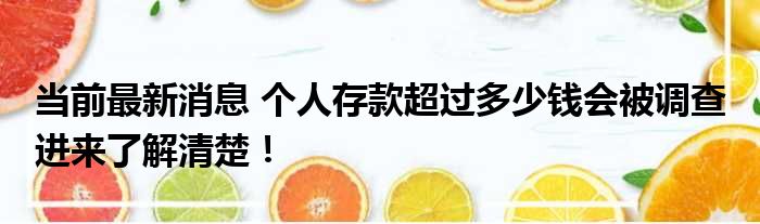 当前最新消息 个人存款超过多少钱会被调查 进来了解清楚!